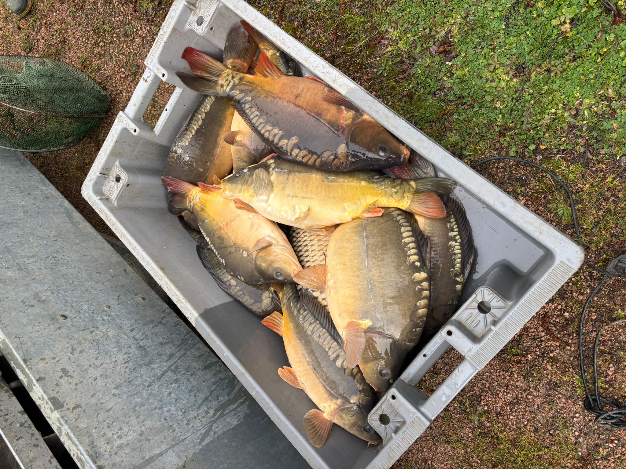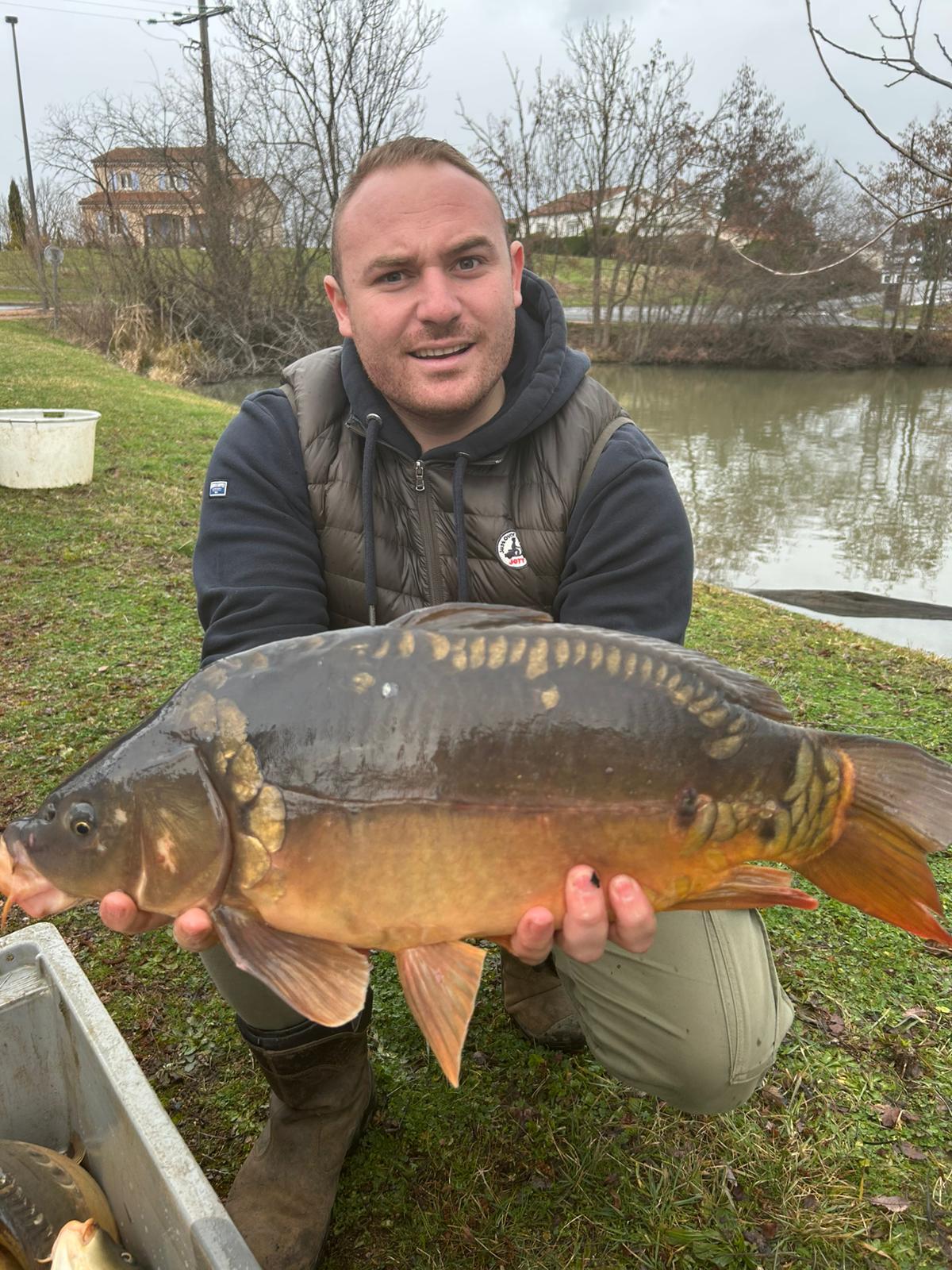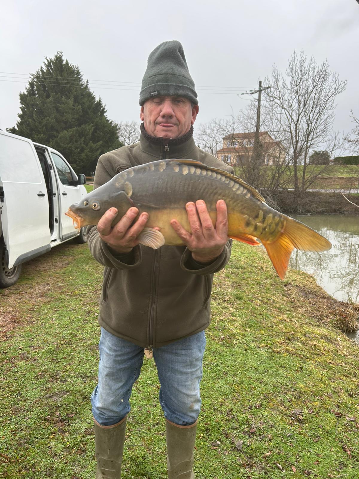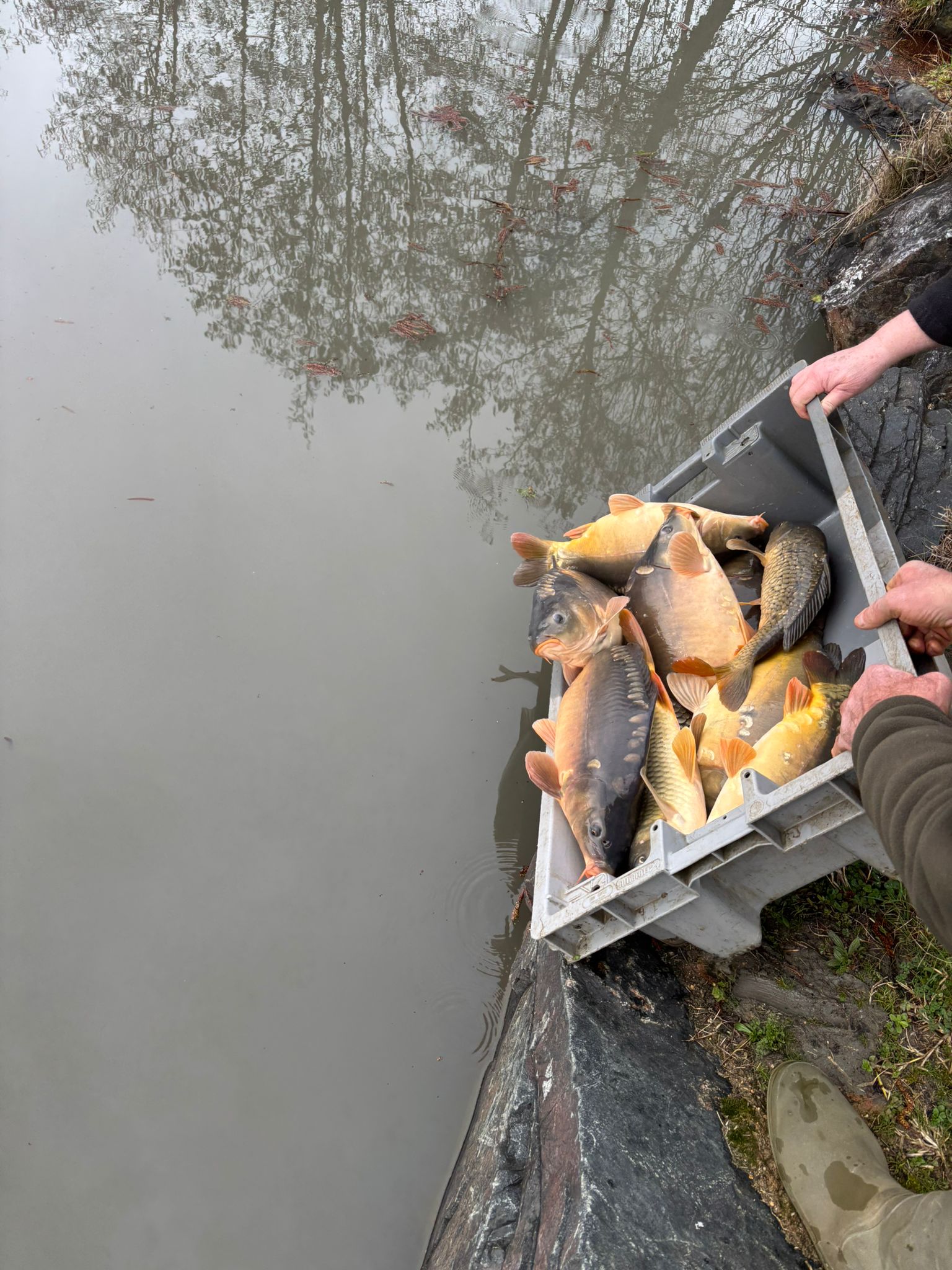 250kg de carpes (mitoirs et communes) sont venus alimenter le grand étang (et quelques petits gabarits dans le petit étang) !